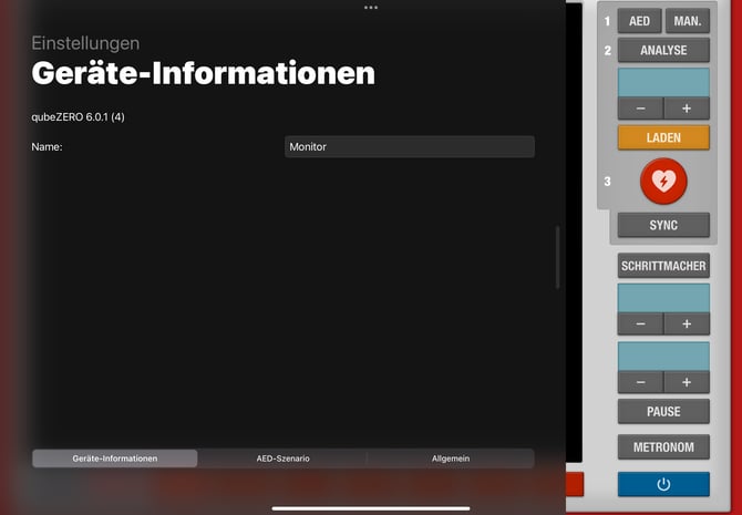 Der Name des Monitors kann innerhalb der jeweiligen App geändert werden. Dazu entweder innerhalb der App auf das App-Logo (z. B. qubeC3, qubeX, qubeZERO etc.) klicken oder innerhalb der App vom linken Bildschirmrand in Richtung Mitte wischen, um die Geräte-Informationen zu öffnen. In den Geräte-Informationen wird unter anderem der Name angezeigt. Jetzt muss nur noch das Textfeld angeklickt werden, um den Namen zu ändern. Die Änderung wird automatisch gespeichert.