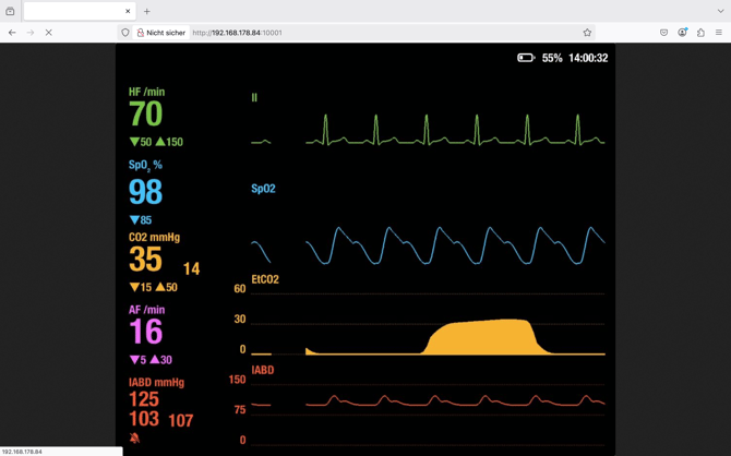 Hinweis: Es wird nur der Systemmonitor angezeigt, die Tasten des Monitor iPads werden nicht angezeigt und können nicht über den externen Bildschirm bedient werden.