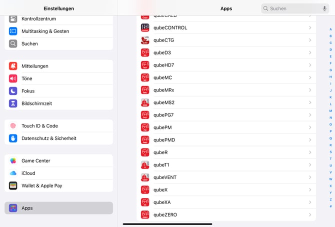 Wird der Sensor trotzdem nicht gefunden, sollten die Einstellungen der Monitor-App geprüft werden. Dazu die Einstellungen des iPads öffnen, auf der linken Seite nach unten scrollen und den Eintrag Apps auswählen. Anschließend auf der rechten Seite nach unten scrollen bis die Monitor-App erscheint. Diese auswählen und sicherstellen, dass Bluetooth aktiviert ist.