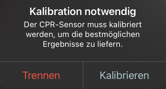 Wenn der CPR-Sensor zum ersten Mal verbunden wird oder zwischenzeitlich vollständig entladen war, muss er kalibriert werden. In diesem Fall erscheint automatisch ein Pop-up-Fenster. Klicken Sie darin einfach auf Kalibrieren, um den Vorgang zu starten.